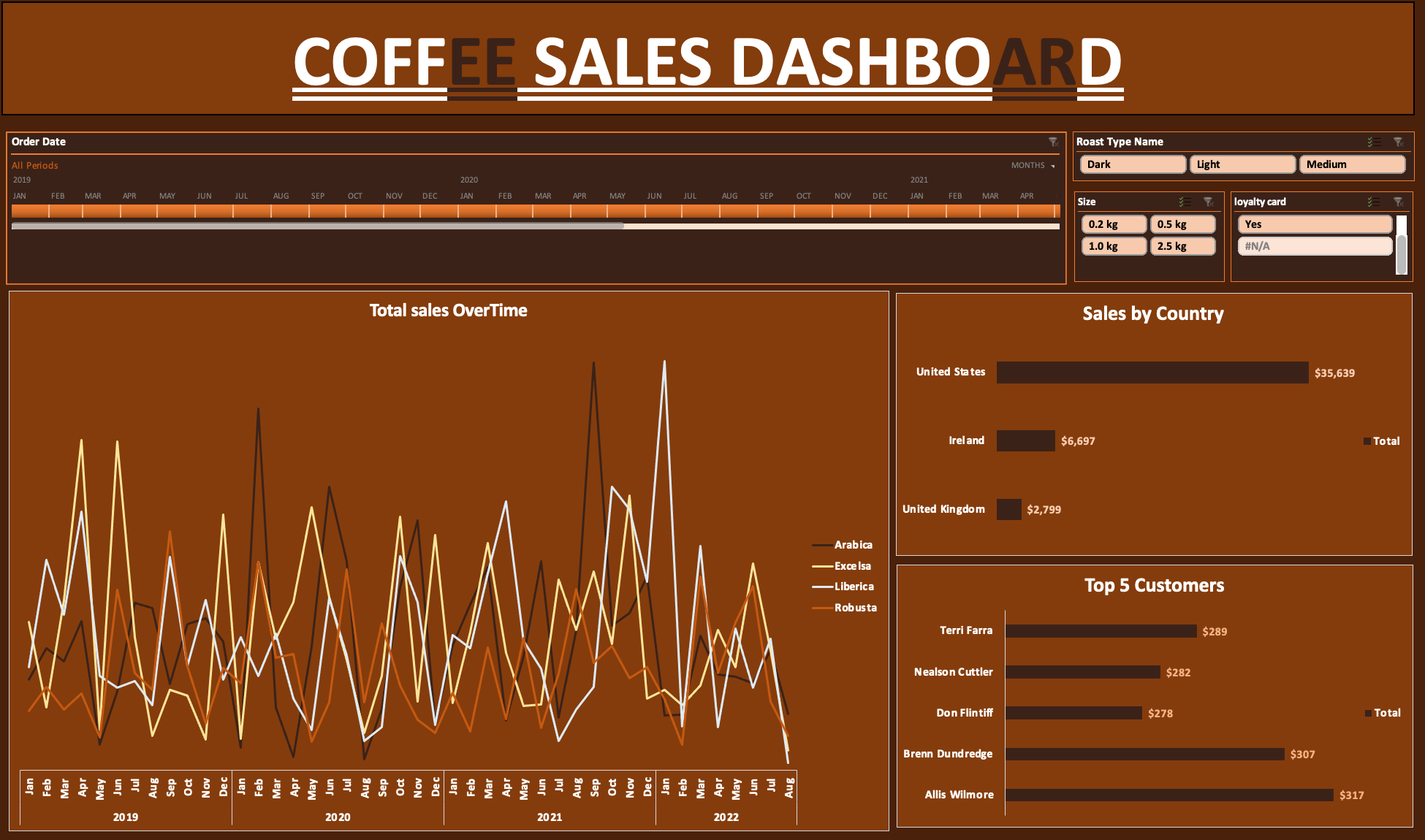 I was responsible for developing an Excel-based Coffee Sales Dashboard that would:
