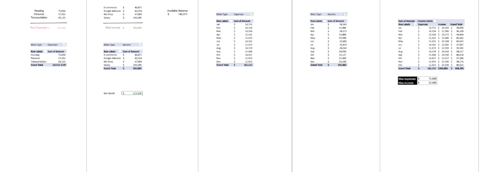 Income Sources: The primary revenue comes from Salary ($9,046) and Google AdSense ($8,260), followed by E-commerce ($7,775) and My Shop ($7,615). This diversification suggests multiple income streams but also highlights that passive income sources like AdSense are becoming significant contributors.